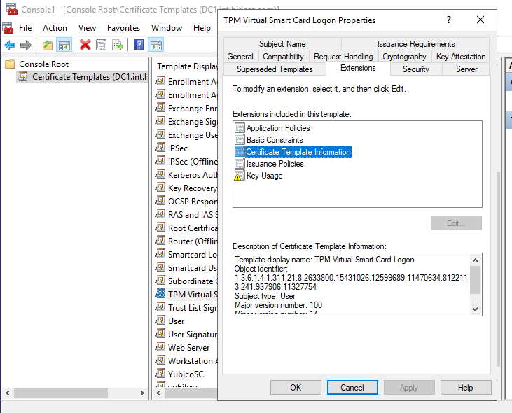 3. To define the third parameter (Certificate Template ID), go to the domain controller, and do the following:
