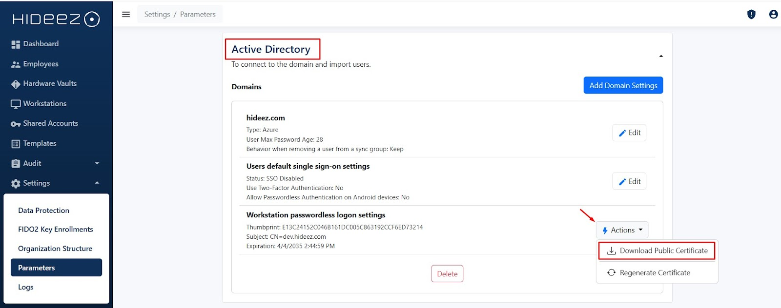 ### **1. Connect Entra ID to Hideez Server and Retrieve the Certificate**