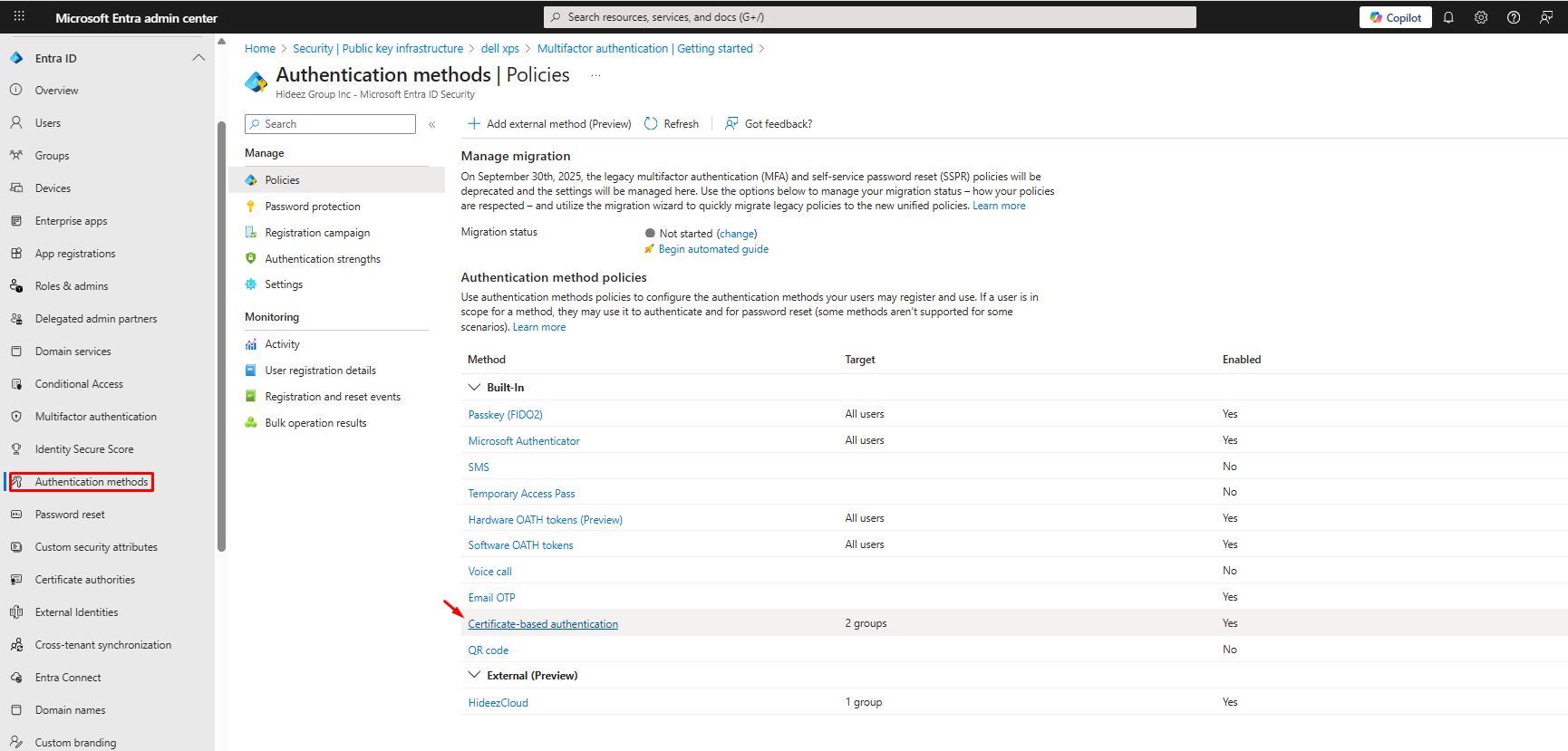 * Navigate to: `Protection → Authentication Methods → Certificate-Based Authentication`