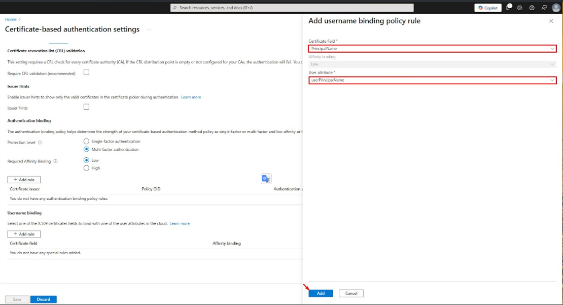 This ensures a proper match between the certificate and the Entra ID account.