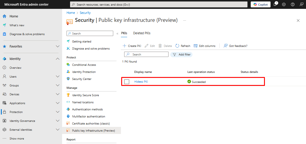 `Security → Public Key Infrastructure → Create PKI`