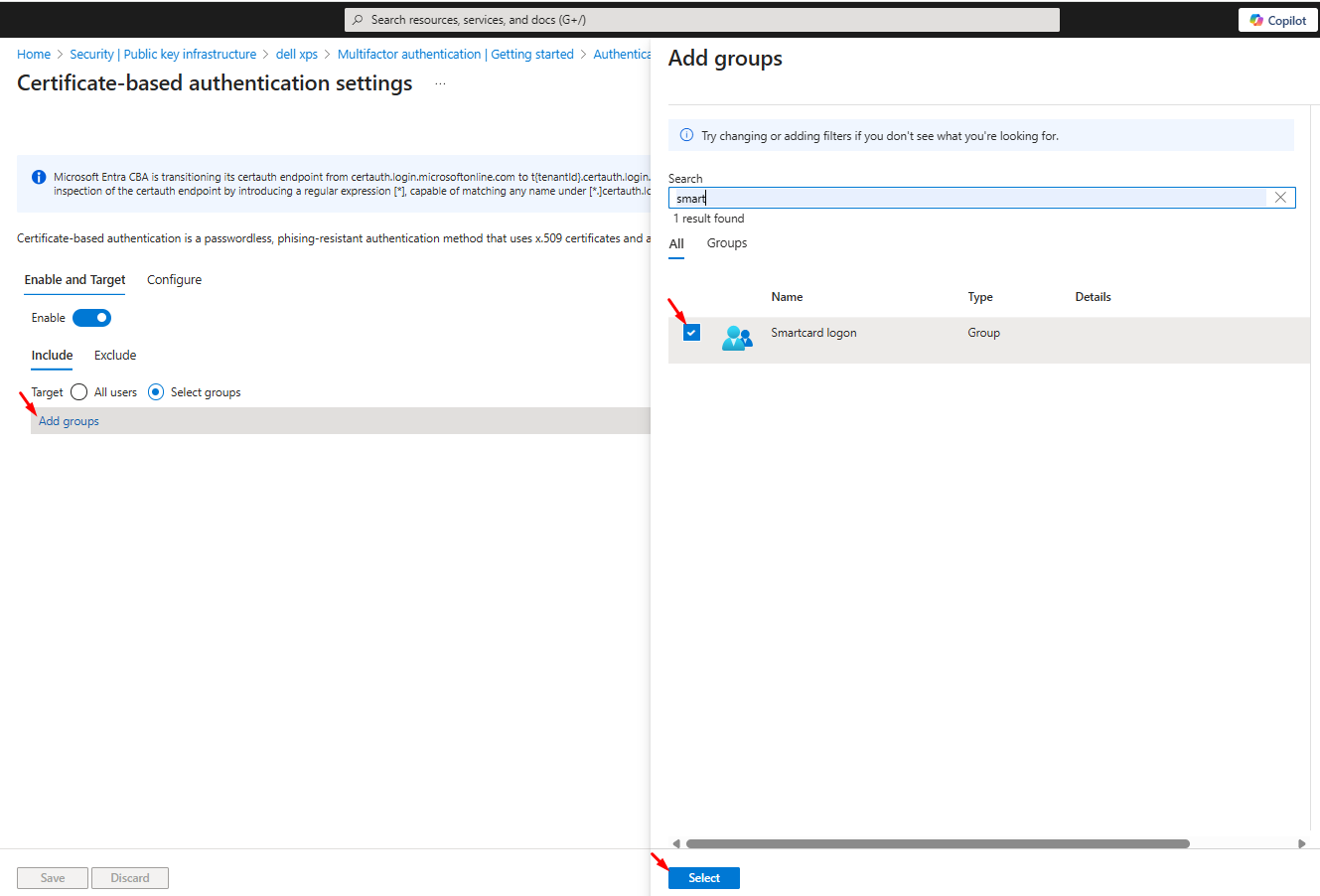 2. **Enable Certificate-Based Authentication for the Group**