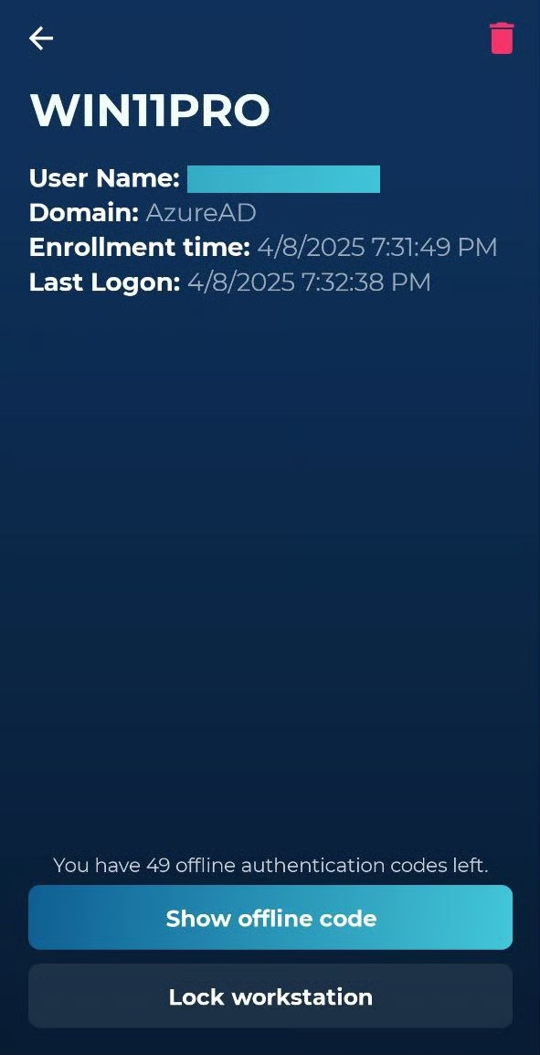If there is no internet connection, you can unlock the workstation using offline codes. These codes are generated in the Hideez Authenticator app, automatically updated after each successful online login, and stored in the TPM module of your PC.