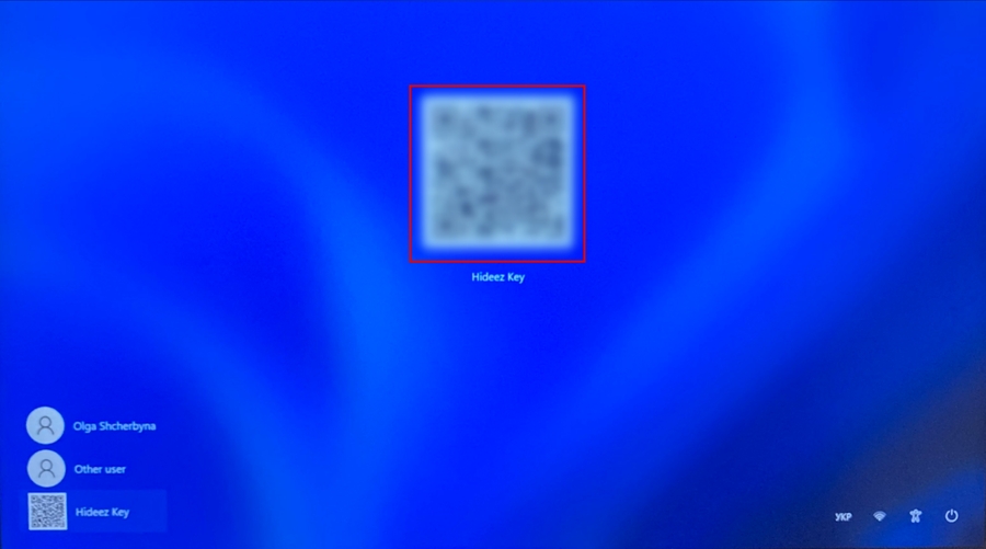 After setting up a login via mobile phone, the QR code will be displayed in the Hideez credentials provider. Scan it with the Hideez Mobile Authenticator, confirm the login on your phone, and then computer will be unlocked.