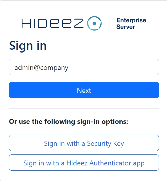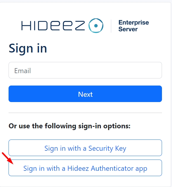 Click the “Sign in with a Hideez Authenticator App” button on the web browser.