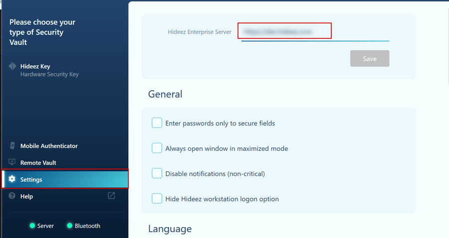 Input the HES address in the Settings section.
