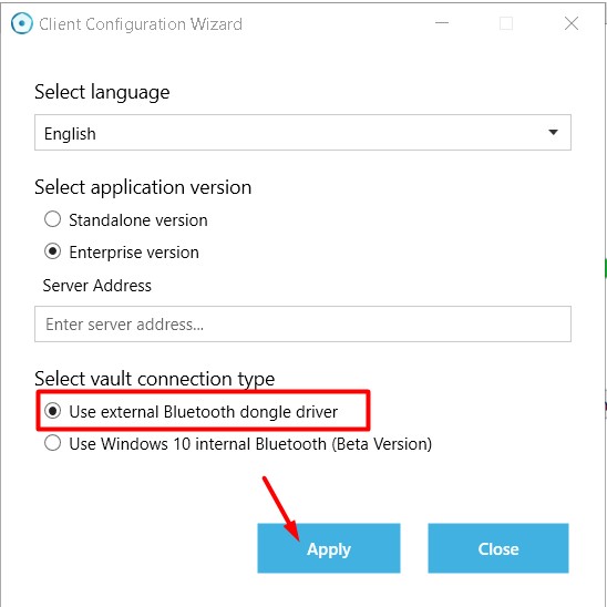Choose the desired options and click the “Apply” button. Please, note that after the application configuration change to enterprise mode, you have to provide the HES address.
