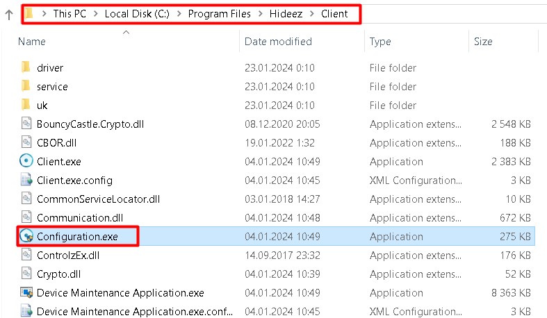**Program Files > Hideez > Client > Configuration**