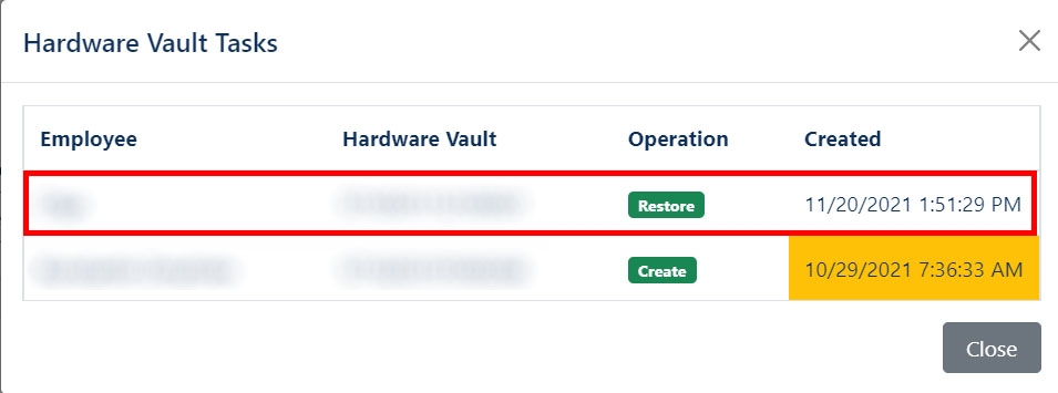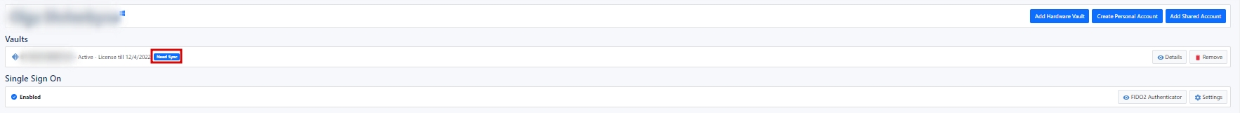 After that accounts will be restored on the server and you will need to synchronize key on the server (just connect your key to Client). Also restore task appears on the server.