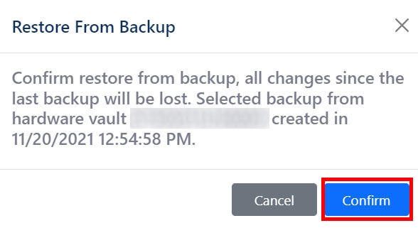 Confirm restore. Please, notice that all changes since the last backup will be lost. Also will be restored only accounts created on server, shared and personal. Private accounts added by employee via Client will remain.