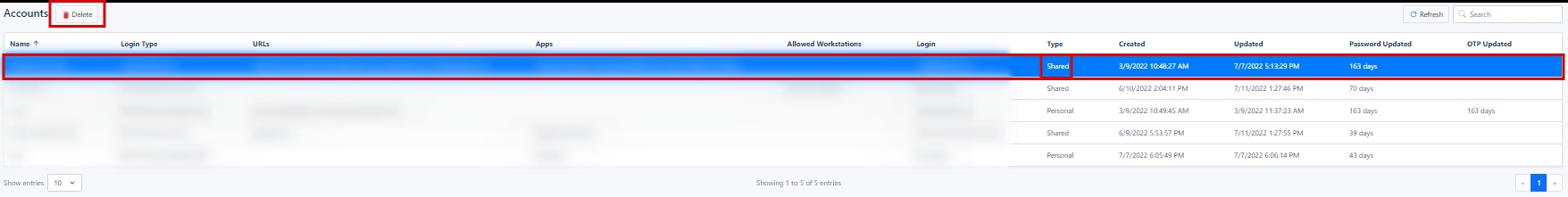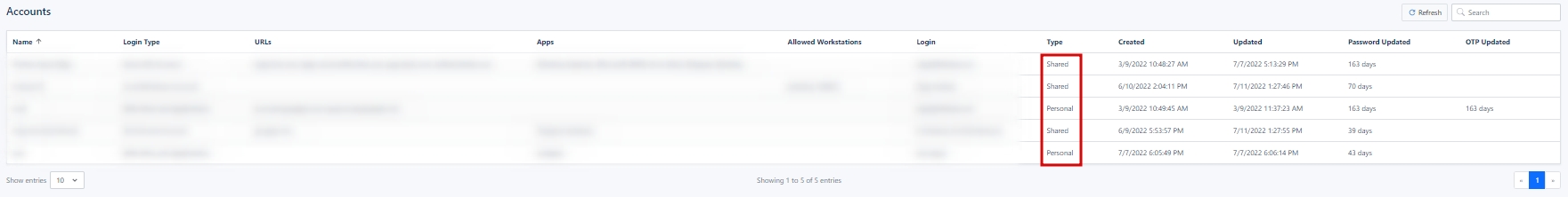 In the column with the account type, you can recognize whether this is a personal or shared account.
