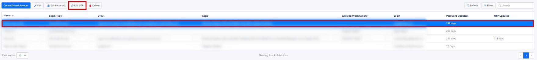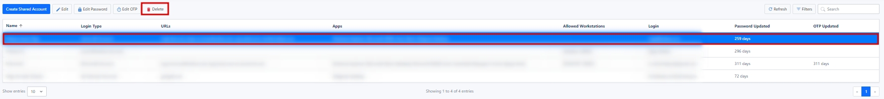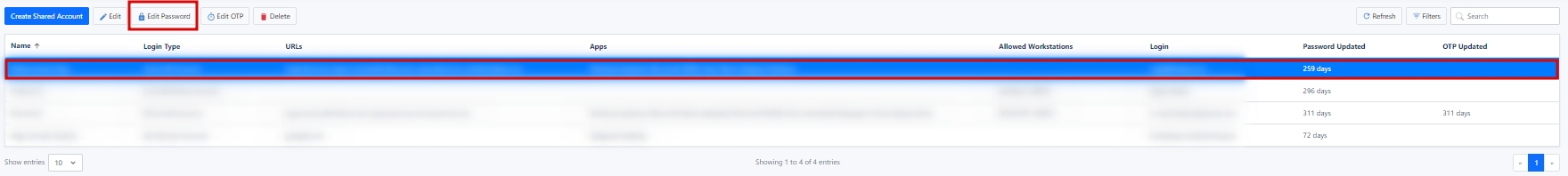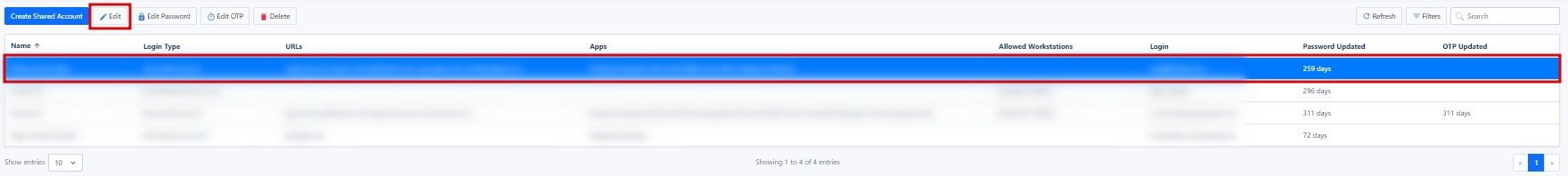 All actions for changing shared account data can be made only on the Shared accounts page.