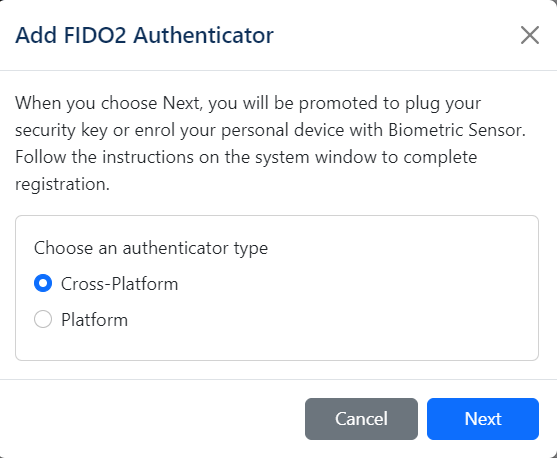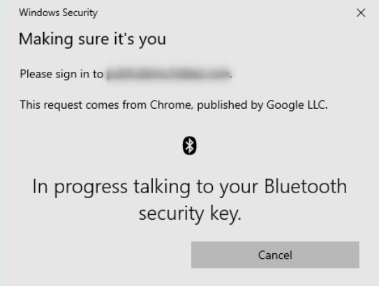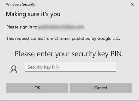 Follow the on-screen instructions for your FIDO key: