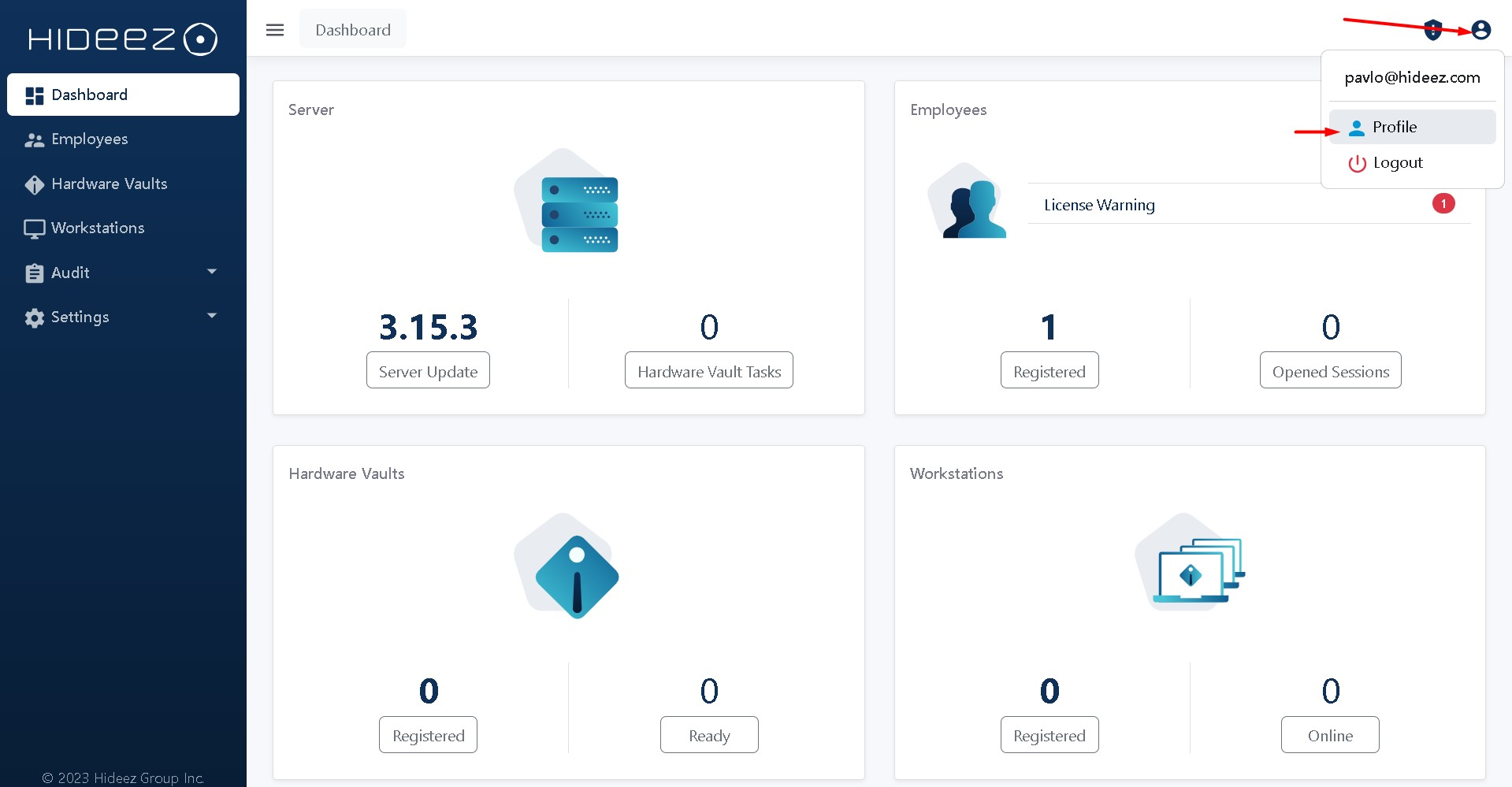 In the upper-right corner of the window, click the profile icon and select Profile from the drop-down list.