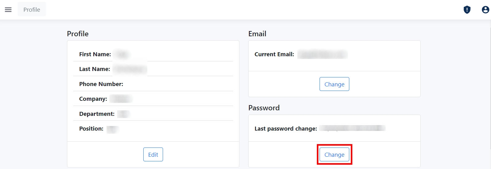 In the Profile window, navigate to the Password section and click Change.