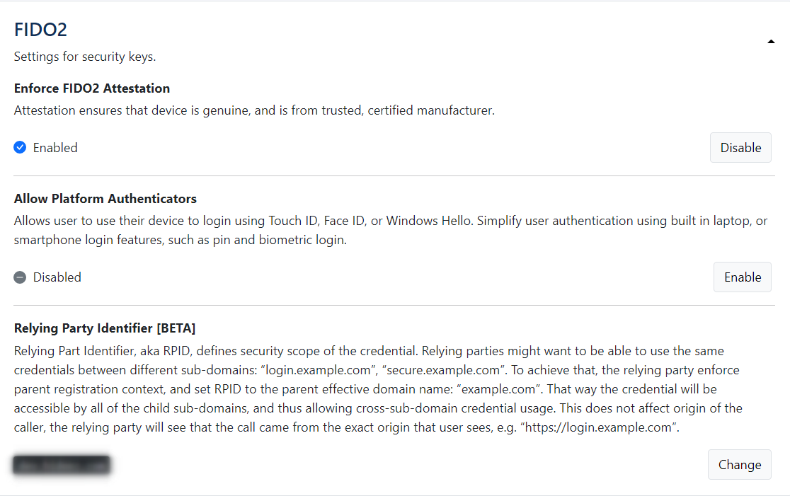 If the "Allow Platform Authenticators" feature is enabled, you can choose the type of security key you are enrolling for the user (by default it is cross-platform):