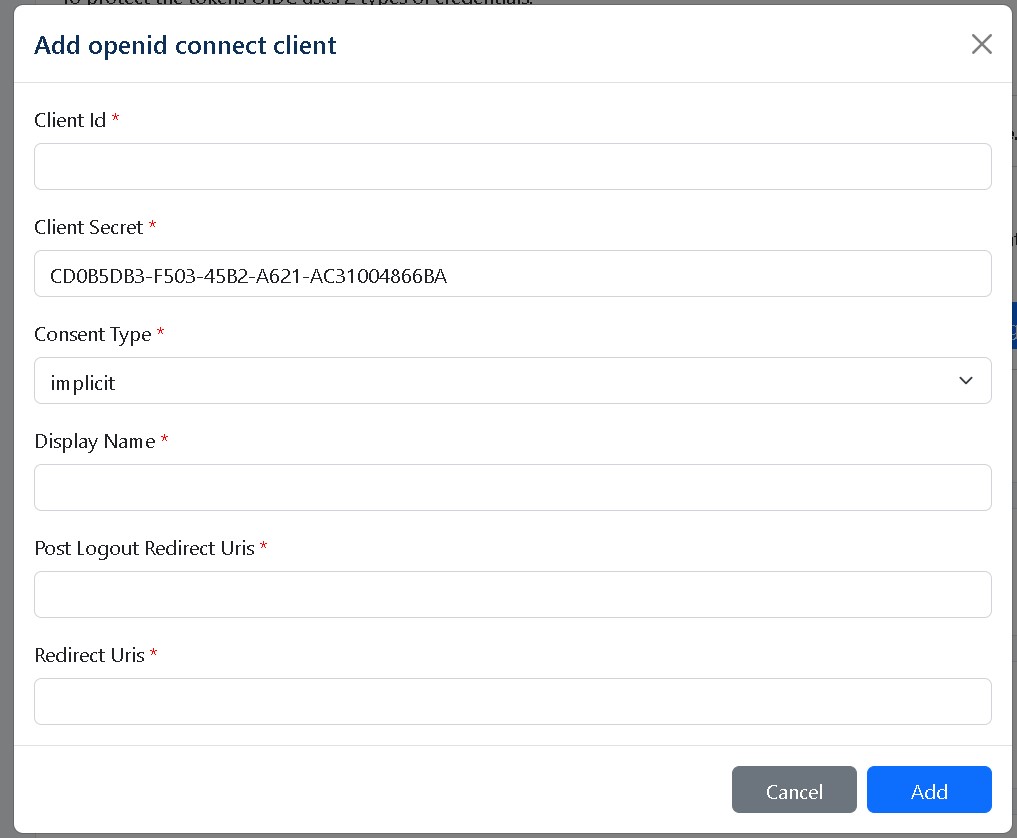 6. As you are the Administrator, you have to set **Openid connect client**: