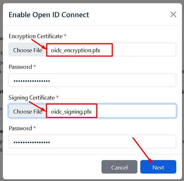 2. Download two types of Certificates, enter passwords, and click **Next**