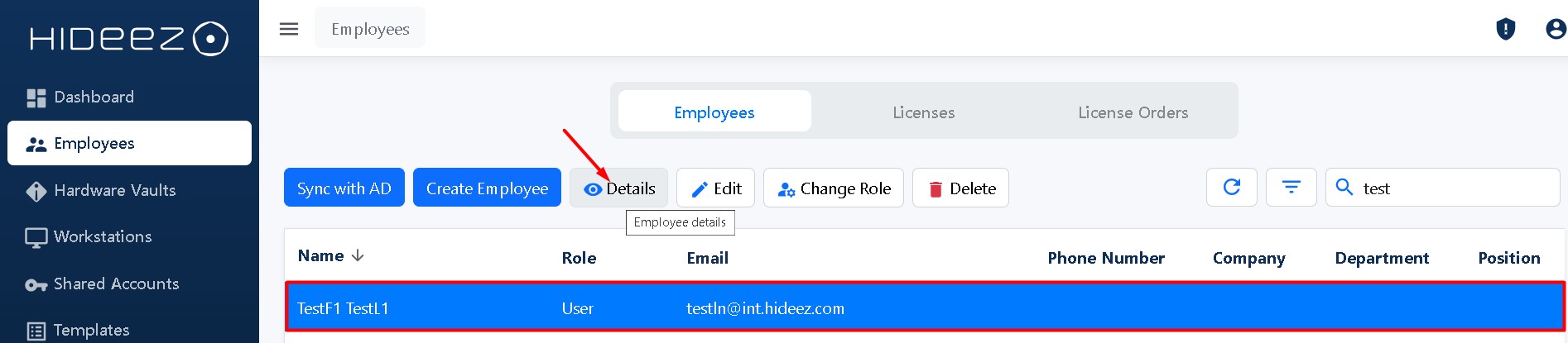 Option 2. Assigning the Hideez Key to the existing Employee.
