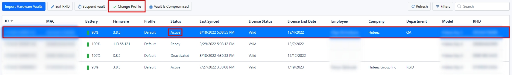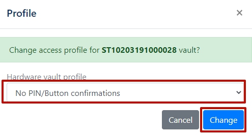 Select the needed hardware vault and click on the line with it. Click the Change profile button.