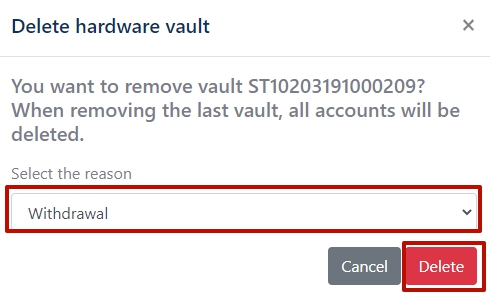 Select the reason for removing (withdrawal/broken) and click Delete.
