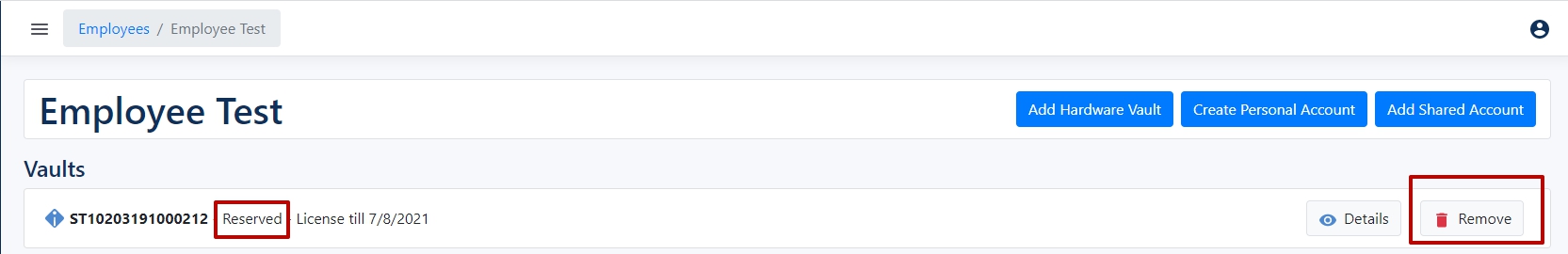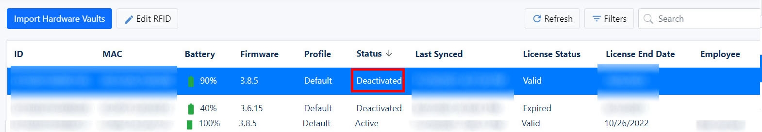 Hideez Key will be displayed in the Hardware Vaults list in the Deactivated status.