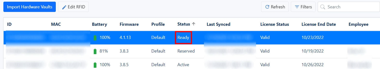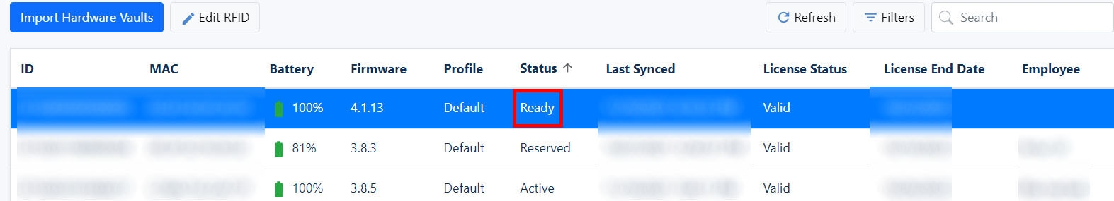 Hideez Key will be displayed in the Hardware Vaults list in the Ready status.