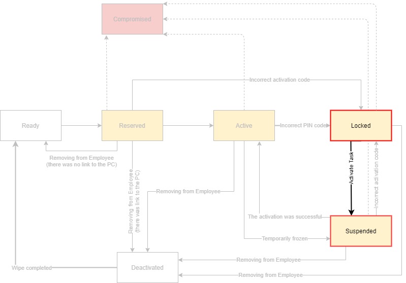 This status means that Hideez key is locked at the hardware level due to entering an incorrect PIN or activation code. The user cannot work until the device is unlocked.