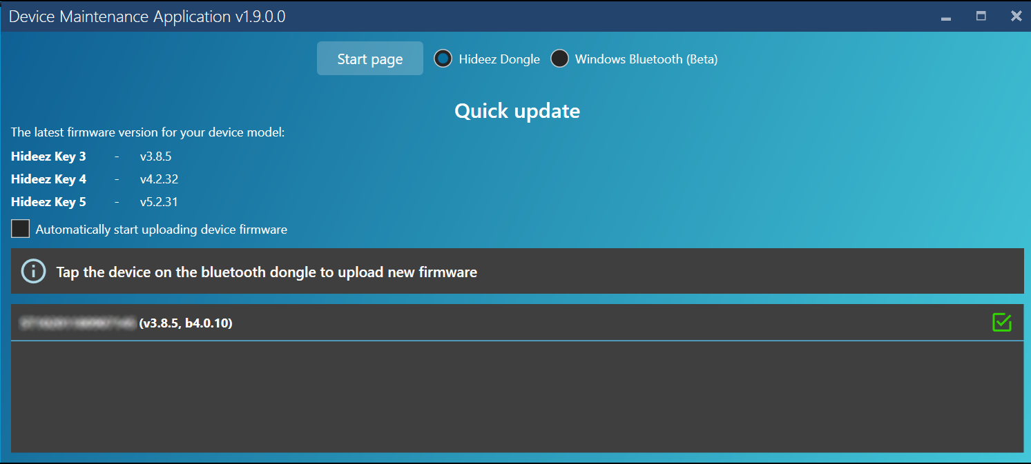 Note! Device Maintenance Application works only on PC with installed Hideez Client.