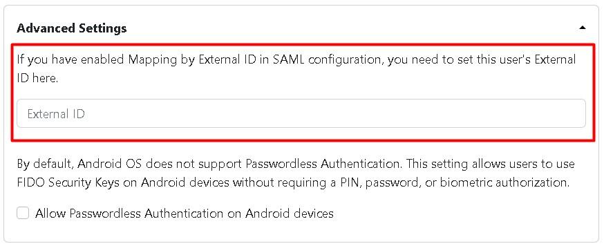 If External ID is used as the Name Identifier Field in your SAML configuration, you must manually populate the External ID for each employee.