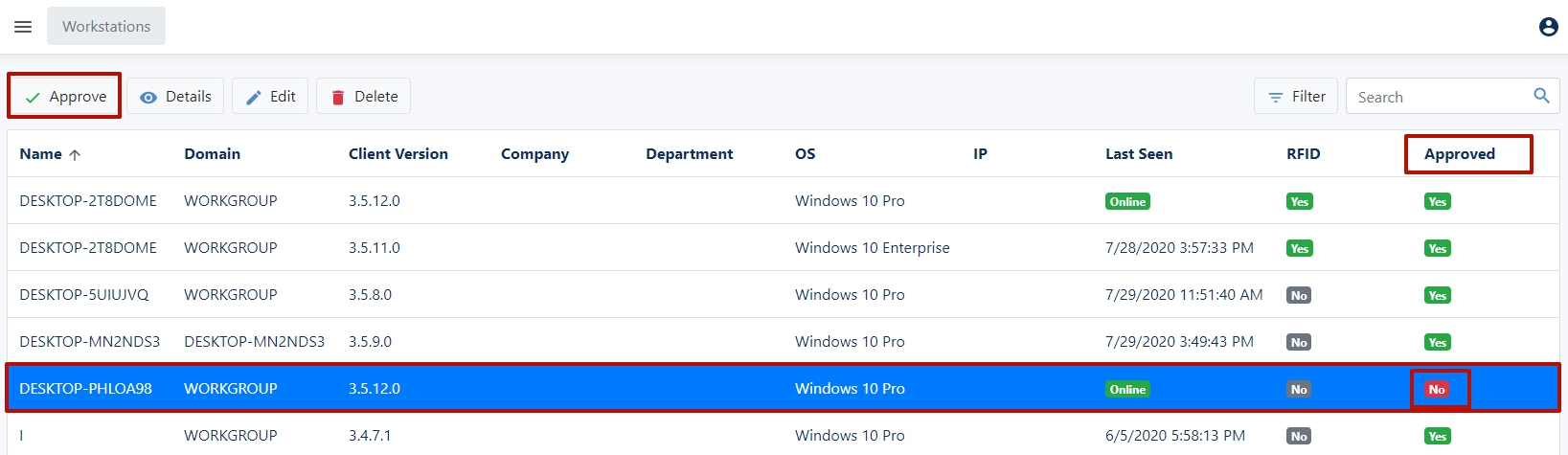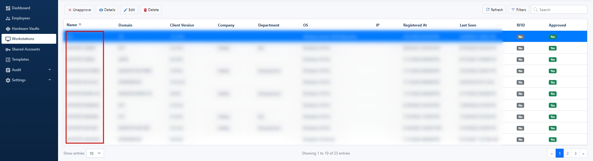 Once the Hideez Client app is installed on a workstation and HES server is specified in the corresponding field, this workstation appears in the list of workstations on HES.