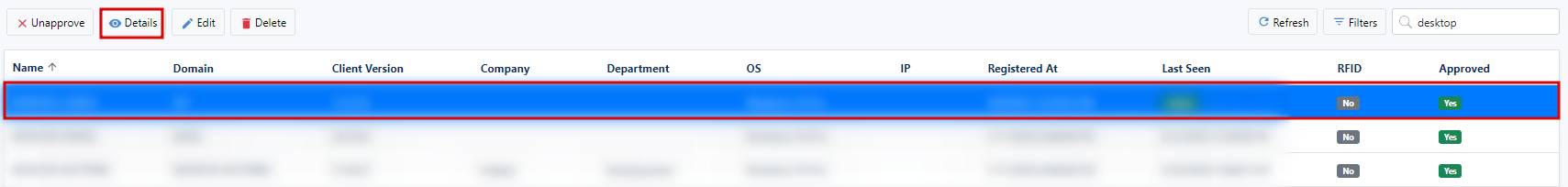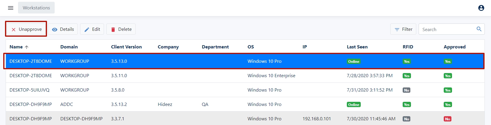 You need to click on the line with the desired workstation and click Unapprove.