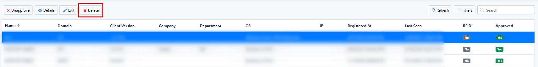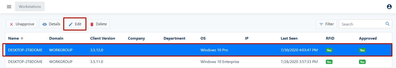 Note! When you delete a workstation, all associated logs will be deleted.
