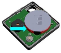 The case is made of two halves latched together. To replace the battery, open the case and lift the gap between the halves with a fingernail or a plastic card. Do not use metal objects. Remove the old battery by pushing it from the inside using a narrow plastic object. Install the new CR2032 battery on the narrow side (minus contact) of the board. Hideez Key will start to work.