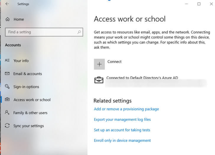 On the workstation, go to Settings → Accounts → Access work or school → Connect.