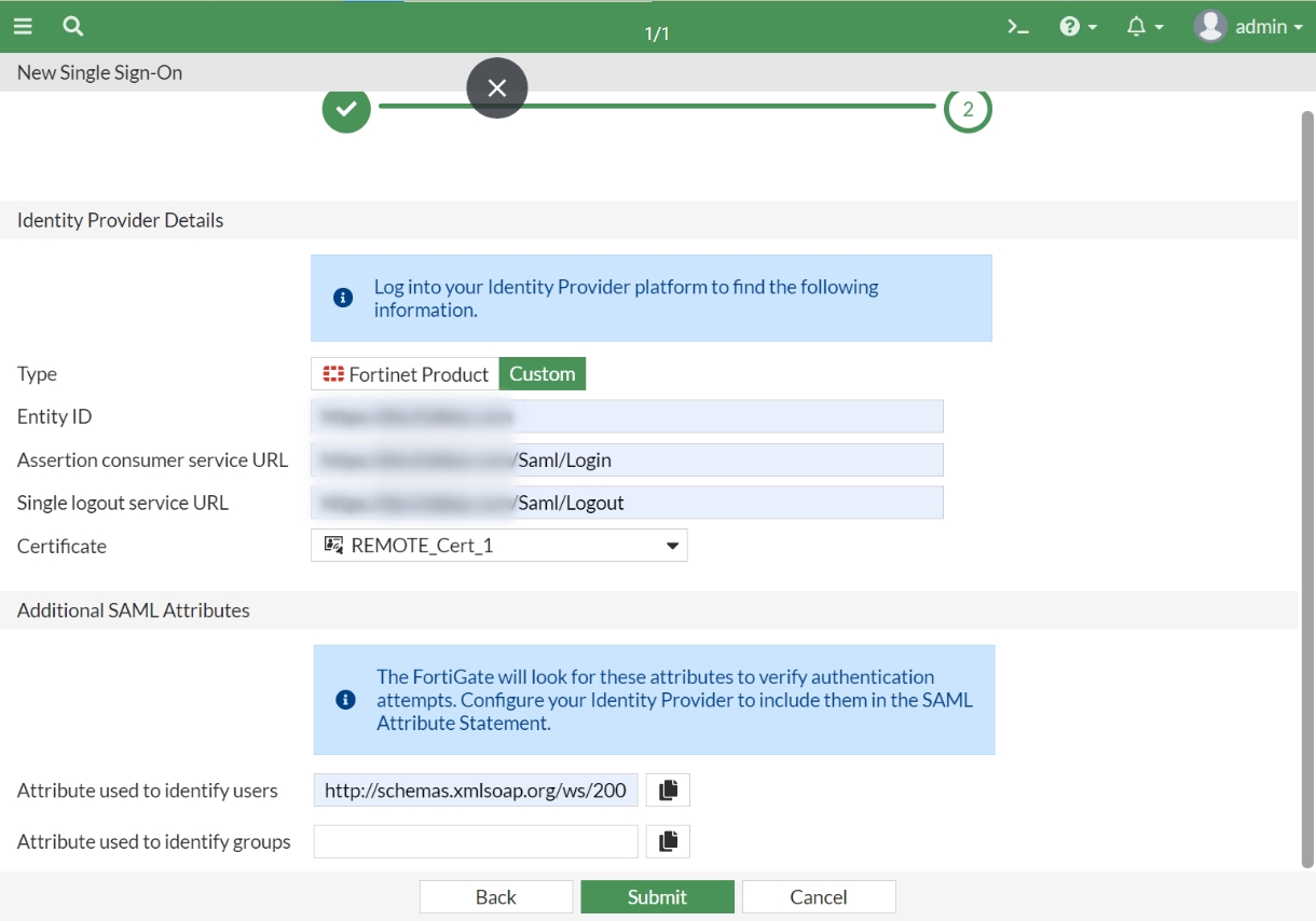 For configuring SAML SSO in the GUI refer to this guide - https://docs.fortinet.com/document/fortigate/7.2.1/administration-guide/989067/configuring-saml-sso-in-the-gui