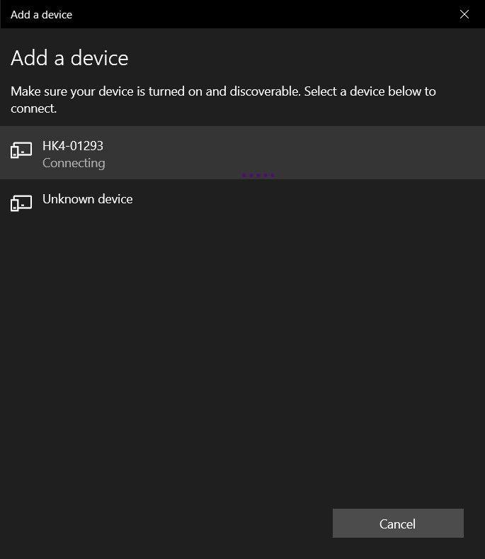 Go to Start → Settings → Devices → Bluetooth & other devices → Bluetooth and select your Hideez Key device in the list of devices