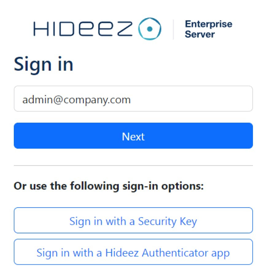 1. Sign in to your Hideez server using your email and password
