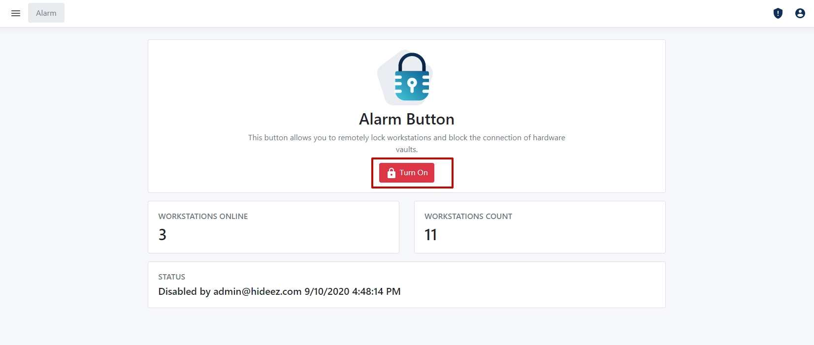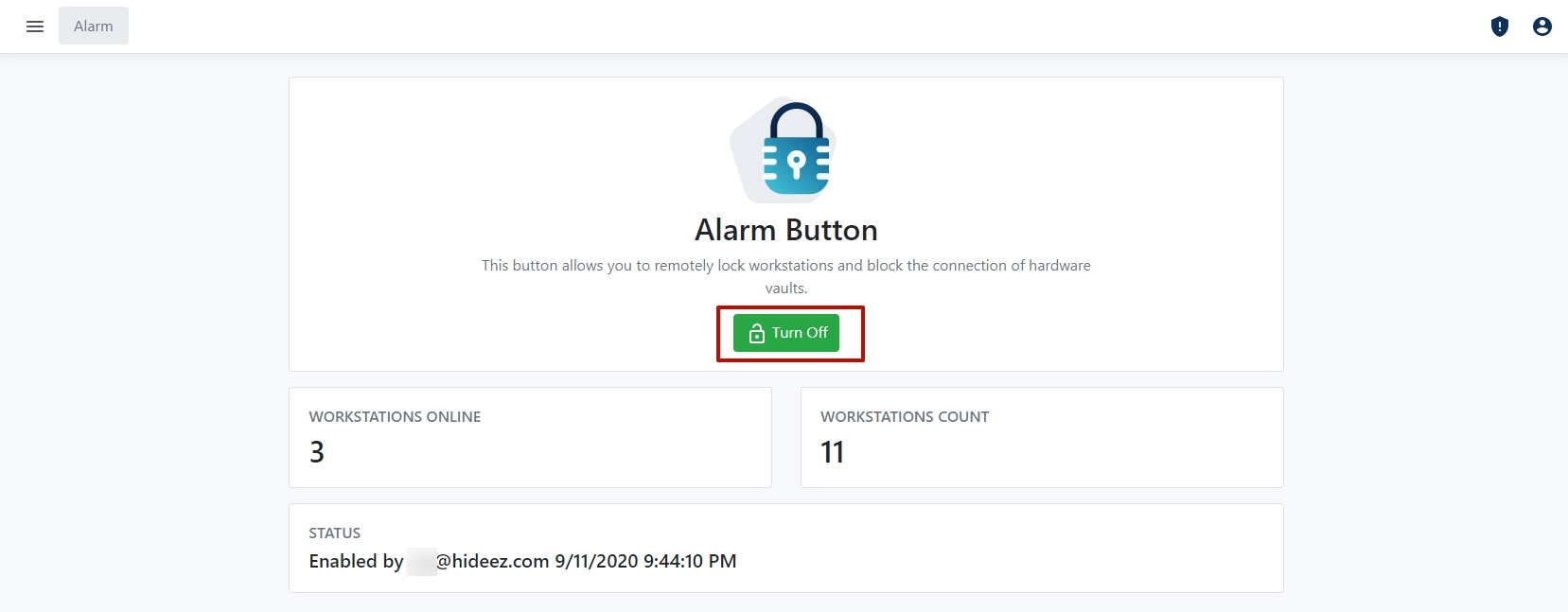 If for some reason, you need to block all computers on which the Hideez Client is installed and which are online and make it impossible to use by Hideez Keys employees in one move, then the Alarm mode is provided for this.