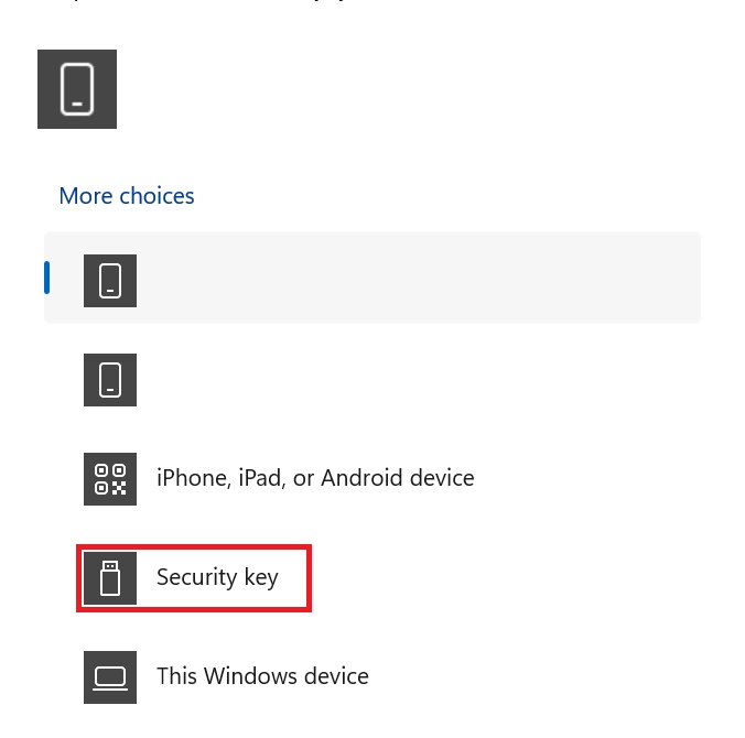Select Security Key for Authentication Choose Security Key as the authentication method and proceed with the login process.