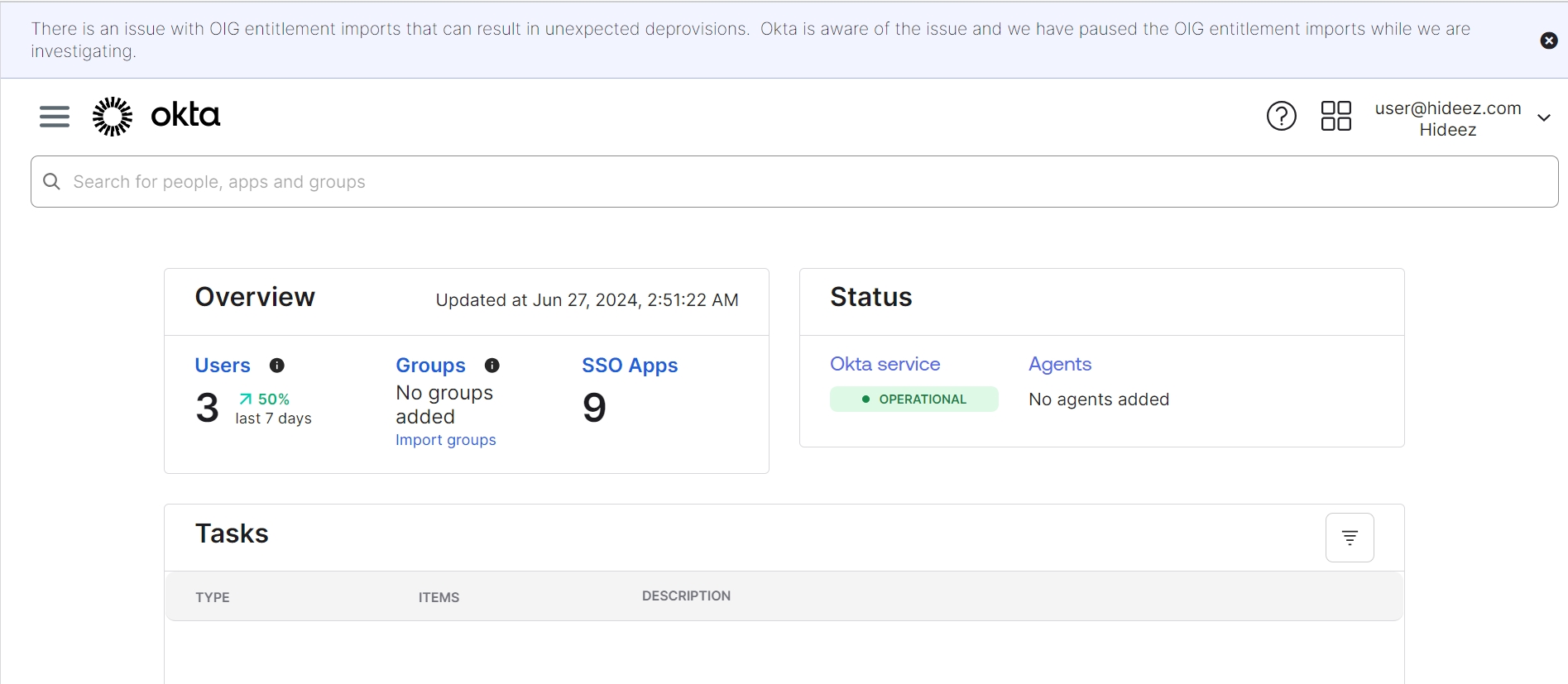 Open the Web Service Access the web service that has been integrated as a Service Provider for SSO login (using SAML or OIDC protocol). In this example, we are using Okta.