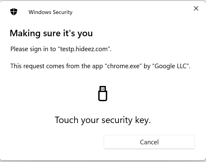 Authenticate with Hardware Key Follow the prompts to authenticate using your FIDO2-compatible hardware key.