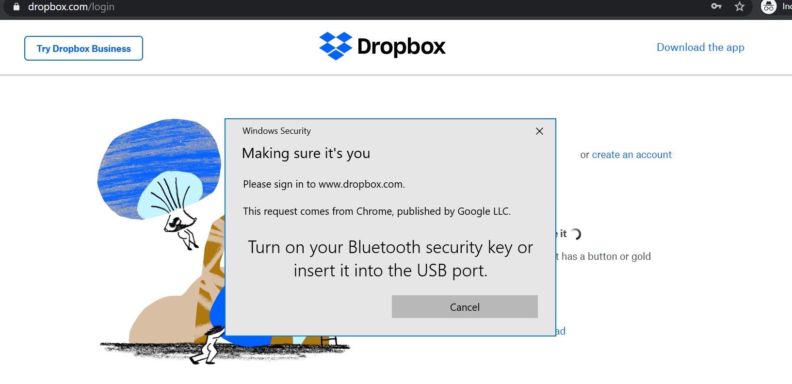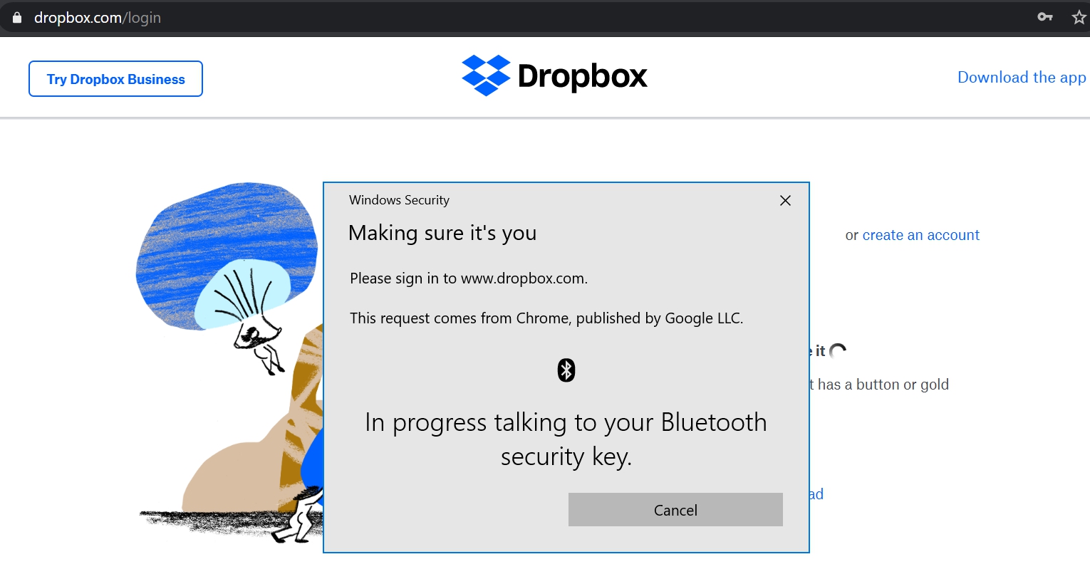 Sign in to your Dropbox account with U2F