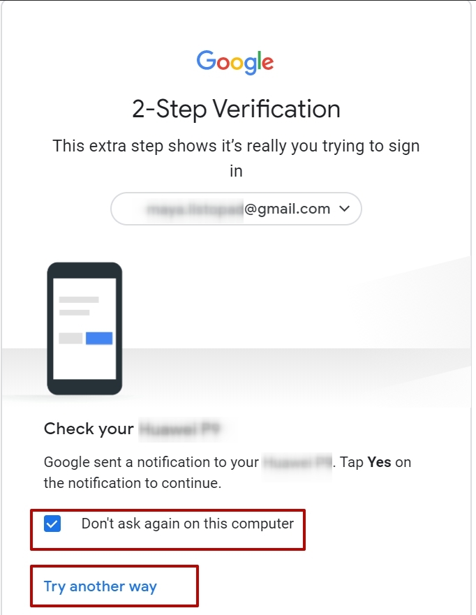 Indicate whether you want to always pass two-factor authentication on this computer or not - clear or leave the checkbox Don’t ask again on this computer and also select Try another way and Get a verification code from the Google Authenticator App: