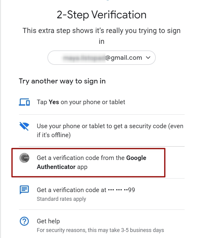 Step 3: Choose Google Authenticator app second-factor authentication method