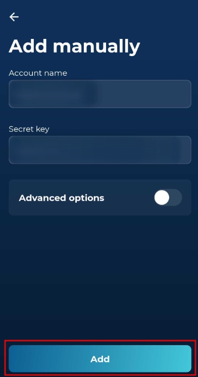 Then you can either scan QR code from the Google account settings or enter it manually:
